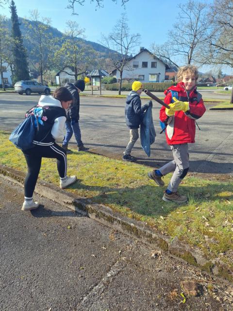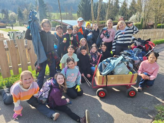 | Die Steinacher Dritt- und Viertklässler waren in Sachen "Umwelt" aktiv und beteilgten sich an der Kreisputzede. |